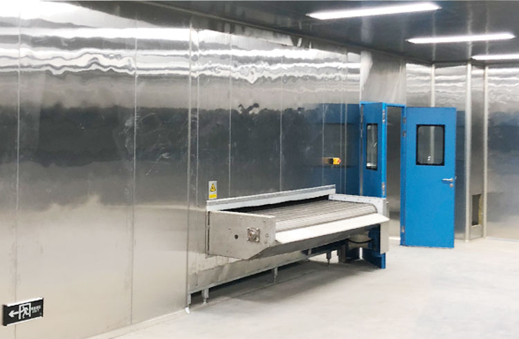 無錫易純凈化設備有限公司是一家集凈化工程、凈化設備為一體的一站式供應商,安徽綠帝食品有限公司作為阜陽市當地清真食品加工龍頭企業,除了對凈化系統要求是十萬等級外,對風淋室要求也很高,由于肉制品生產企業在生產過程中,高濕高鹽,所以需要采用304不銹鋼外殼材質的風淋室,還需配置PLC智能化控制系統,在顯示屏上顯示風淋運行狀態、雙門的互鎖狀態、風淋周期進度和延時開門狀態等。