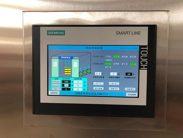 5)工作指示燈指示工作狀態,時間未到,門無法打開;達到設定的時間后,指示燈變綠,可選擇繼續長時間消毒或開門取出檔案車。