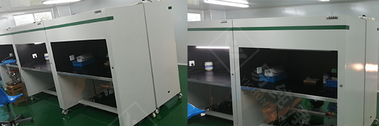 網(wǎng)絡(luò)有戲言,是金子總會發(fā)光的,是鏡子總會反光的。確實(shí)不錯,我們在光學(xué)鏡頭生產(chǎn)和實(shí)驗(yàn)的過程中,最忌諱的就是反光,因?yàn)橐坏╃R頭產(chǎn)生的炫目反光,將會給操作進(jìn)帶來視覺上的誤差,將會導(dǎo)致光學(xué)鏡頭的誤差率大大提高。所以在選擇超凈臺的時候應(yīng)該避免反光現(xiàn)象的產(chǎn)生。常規(guī)的超凈工作中內(nèi)部為白色鋼板,兩側(cè)為玻璃,臺面為不銹鋼,此類超凈臺是超凈臺選擇的大忌。一些未有經(jīng)驗(yàn)的企業(yè),采購常規(guī)超凈臺,然后使用過程中發(fā)現(xiàn)產(chǎn)生的合格率不升反降,其主要原因就是未選擇正確配置的超凈工作臺。光學(xué)鏡片企業(yè)適用的超凈臺應(yīng)該是常規(guī)潔凈工作臺的改良型,超凈區(qū)為全黑型,不反光不透光。從頂部、出風(fēng)口,兩側(cè)玻璃直至整個工作臺面作全黑處理,這樣就可以抑制反光現(xiàn)象的產(chǎn)生,從而保障了產(chǎn)品生產(chǎn)檢測的合格率。